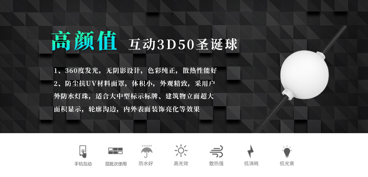 1.360 度發(fā)光,無(wú)陰影設(shè)計(jì); 2.優(yōu)質(zhì)阻然膠料,抗UV,耐候性好; 3.適用3D 造型燈、網(wǎng)紅館、KTV 裝飾、超市3D 屏、酒店裝飾、APP 點(diǎn)陣3D 互動(dòng)屏 4.可配合專業(yè)互動(dòng)系統(tǒng)實(shí)現(xiàn)手機(jī)APP 互動(dòng)、聲光聯(lián)動(dòng)、人體感應(yīng)互動(dòng);